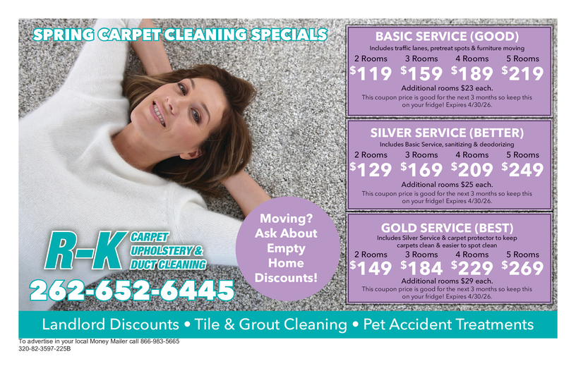 Find out more about R K Cleaning's carpet and rug cleaning services in Kenosha by calling 262-652-6445 or 262-632-8002.